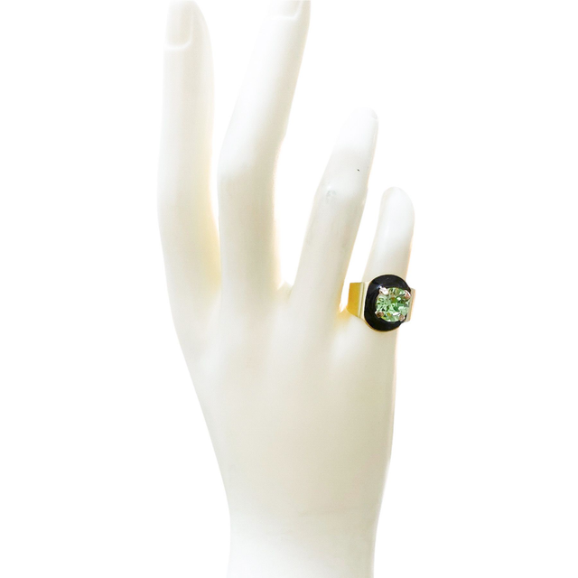 Anello tondo con smalto nero e pietra tonda grande verde chiaro
