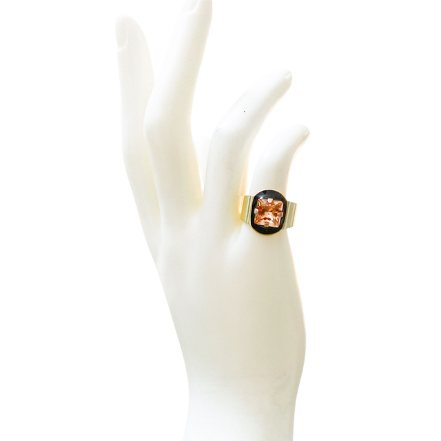 Anello tondo con smalto nero e pietra quadrata rosa antico